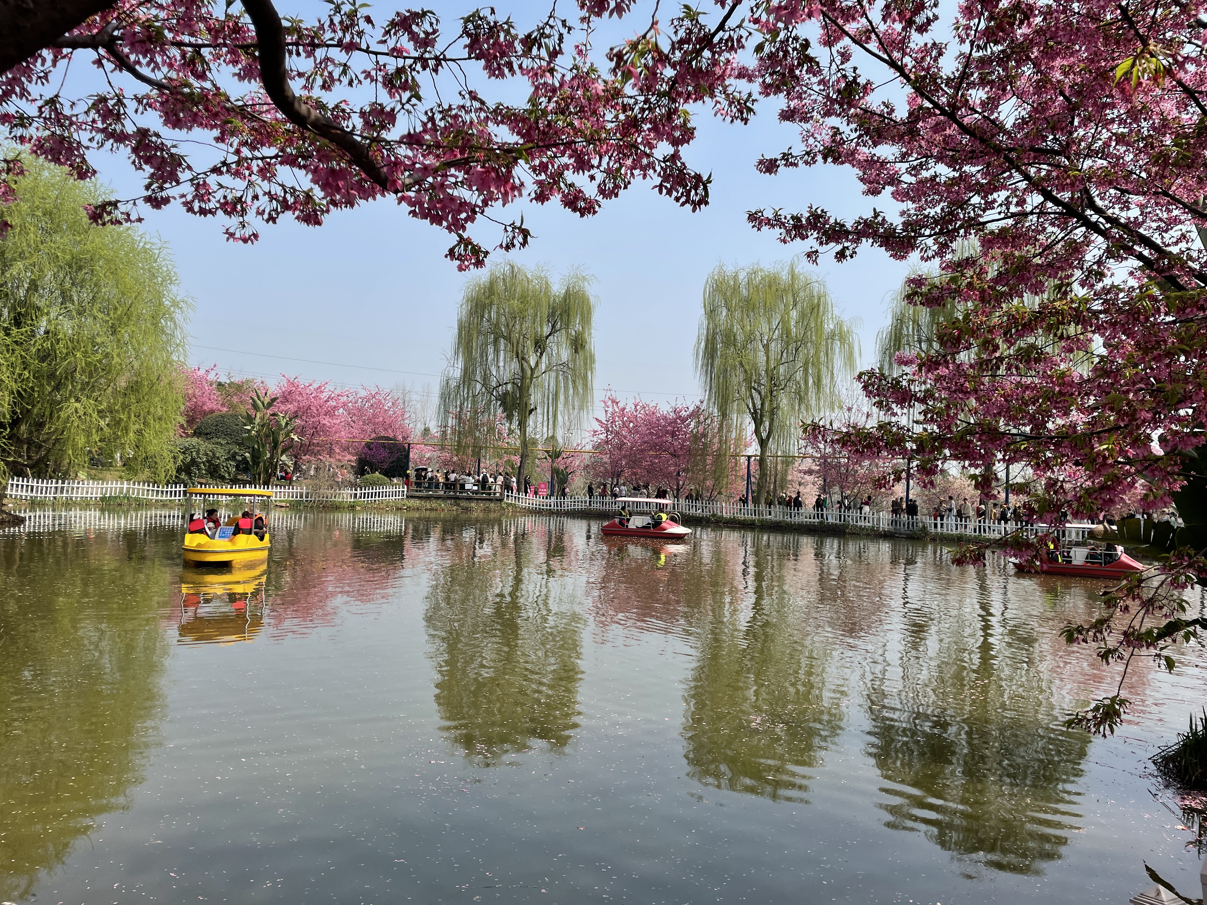 恰逢节日,吸引了不少周边市民前来踏青赏花,成为庄园里一道亮丽的风景线。公司女同胞们三五结队有的穿梭在花丛中、有的荡漾在湖中央、有的漫步在柳荫下,欢声笑语……
