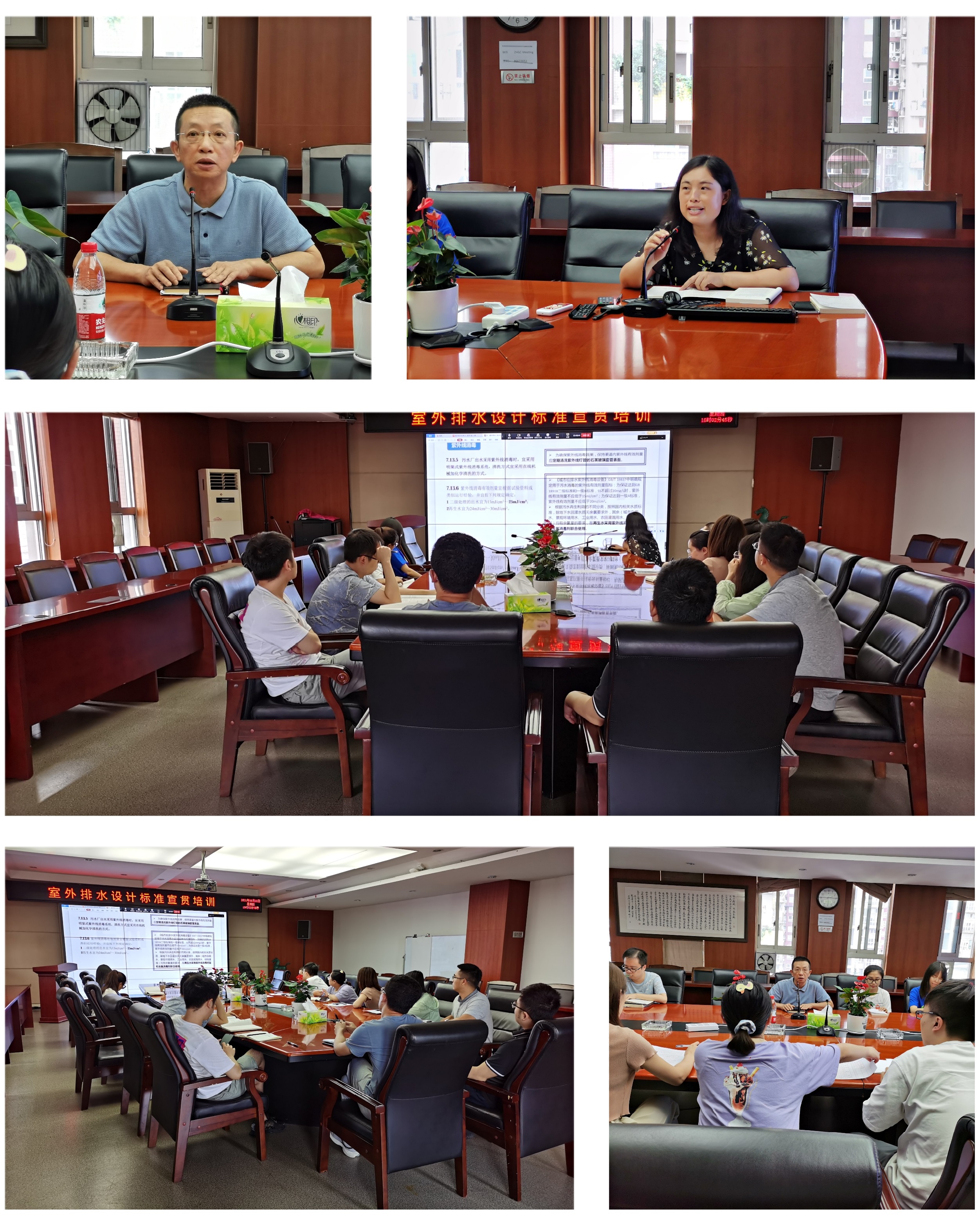 在培训会上,公司给排水专业总工张明杰首先强调了该标准的重要性,并要求大家认真学习。紧接着,李工主要从标准的修订目标、标准主要章节修改内容(包括总则、排水工程、设计流量和设计水质、排水管渠和附属构筑物、泵站、污水和再生水处理、污泥处理和处置、检测与控制等)作了重点宣贯,让大家对标准修改内容有了大致的了解。