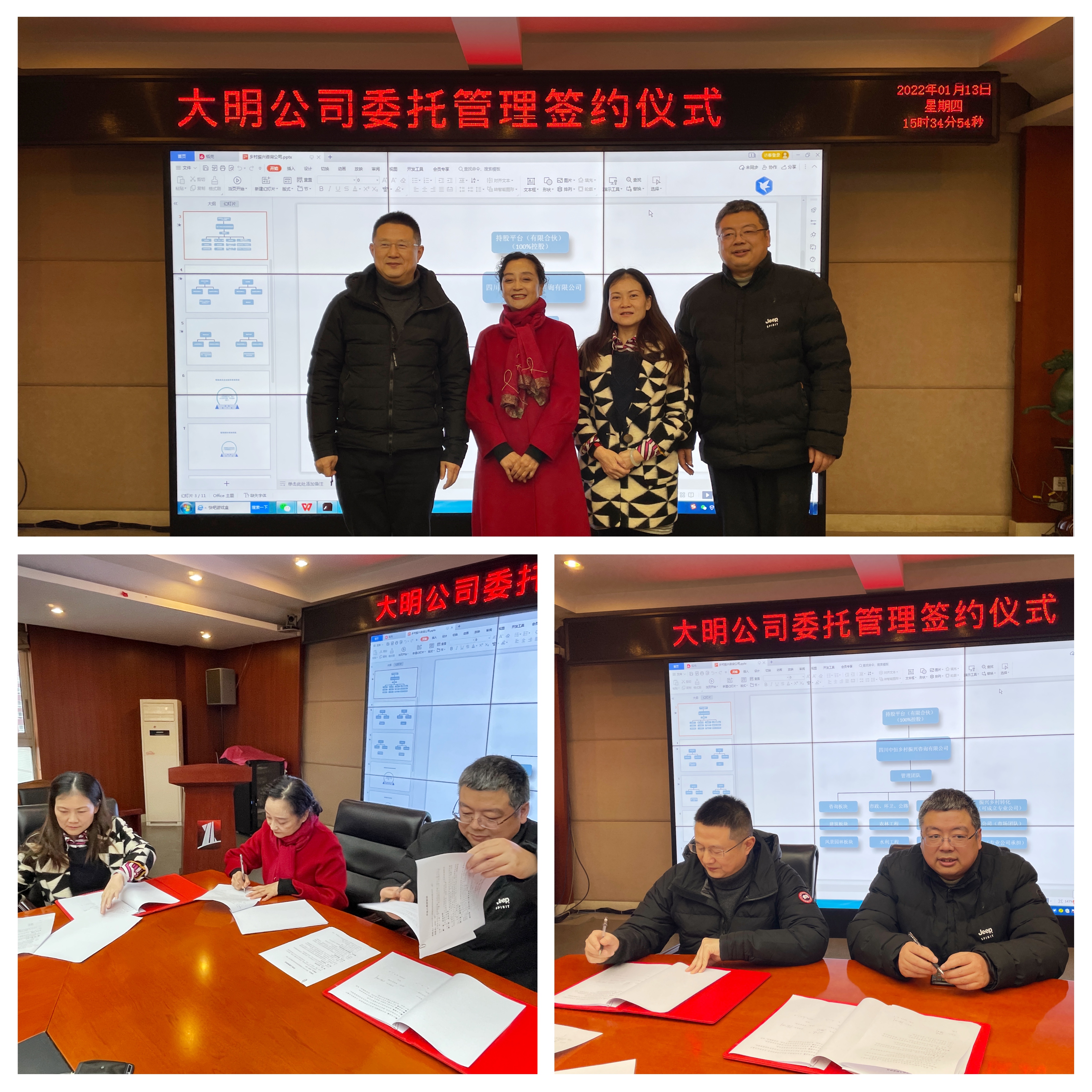 2022年1月,四川大明工程建设管理咨询有限公司委托经营协议在公司七楼会议室正式签订,标志着集团公司“1+N”平台战略正式进入实质性实施阶段。